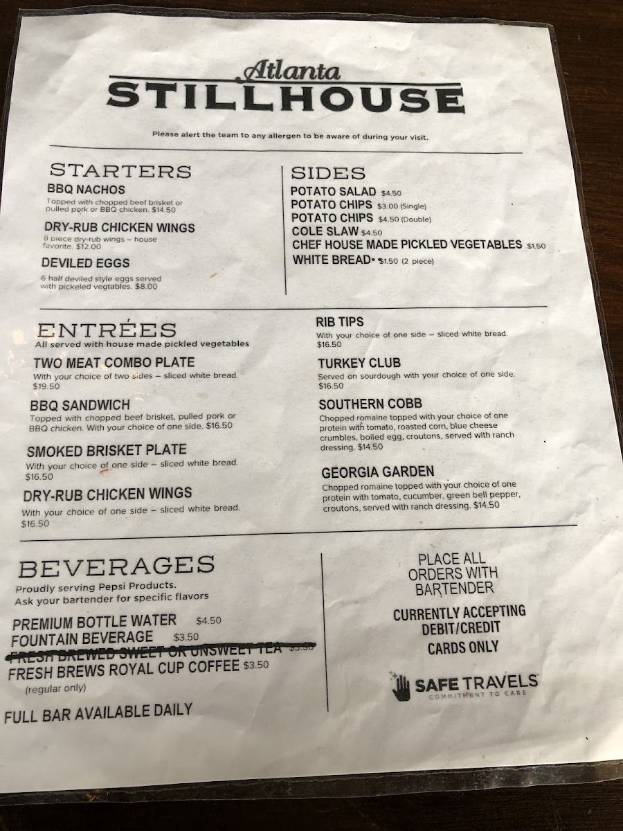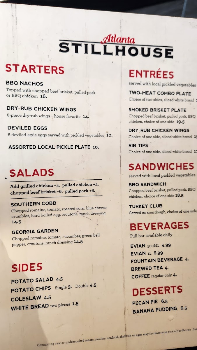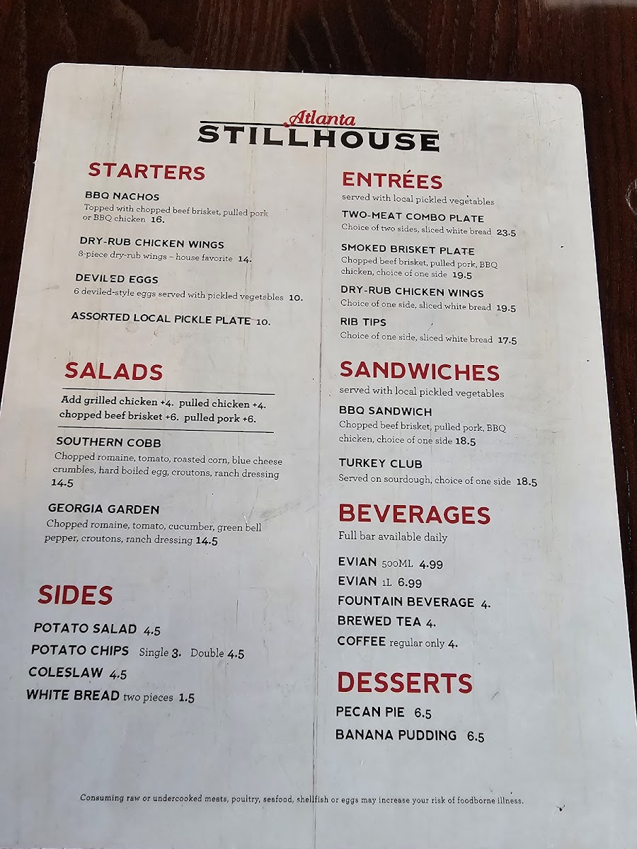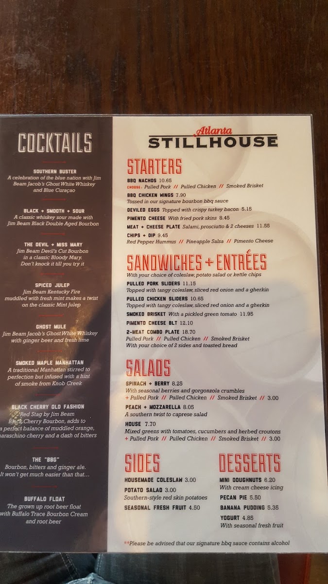 Atlanta Stillhouse Menu