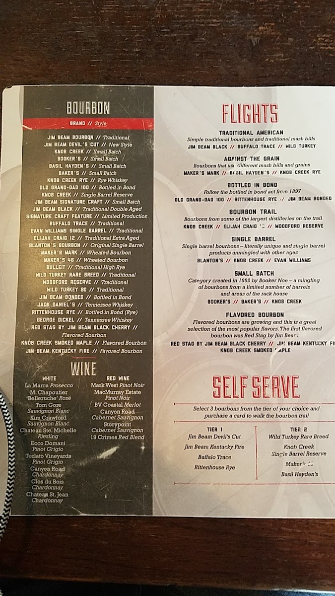 The drink selection carries the same easygoing spirit with a focus on small-batch bourbons and a carefully chosen range of red wines, including smooth Pinot Noirs and bold Cabernet Sauvignons. Guests often enjoy pairing their meal with an IPA or selecting from a self-serve bourbon flight, which invites a leisurely exploration of flavors.